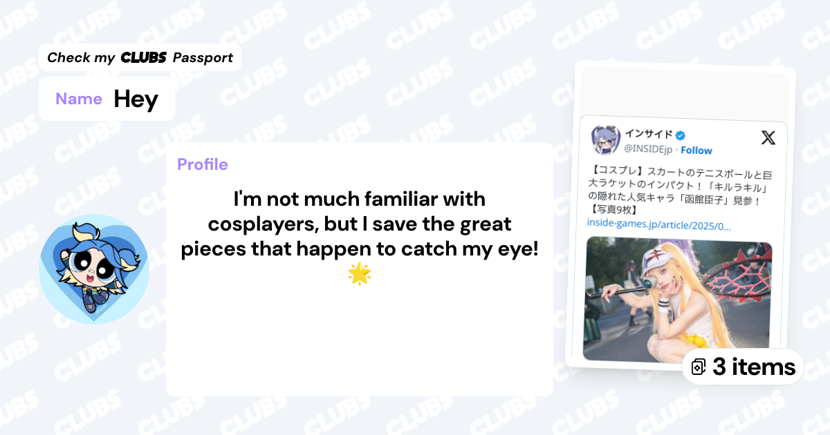 I'm not much familiar with cosplayers, but I save the great pieces that happen to catch my eye! 🌟