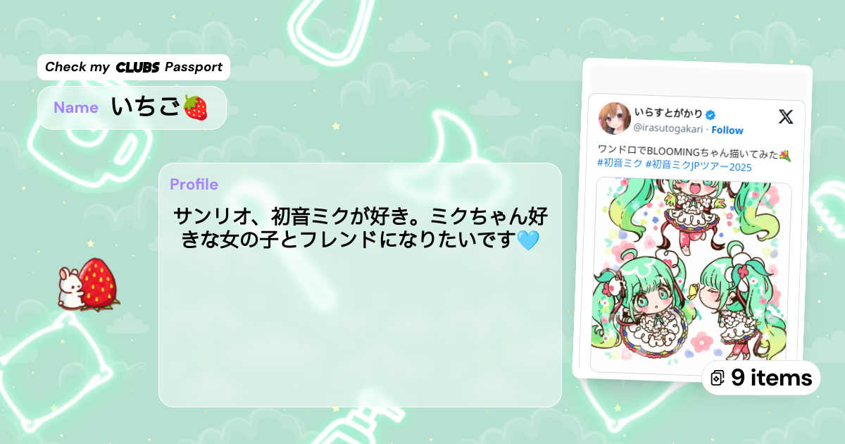 サンリオ、初音ミクが好き。ミクちゃん好きな女の子とフレンドになりたいです🩵
